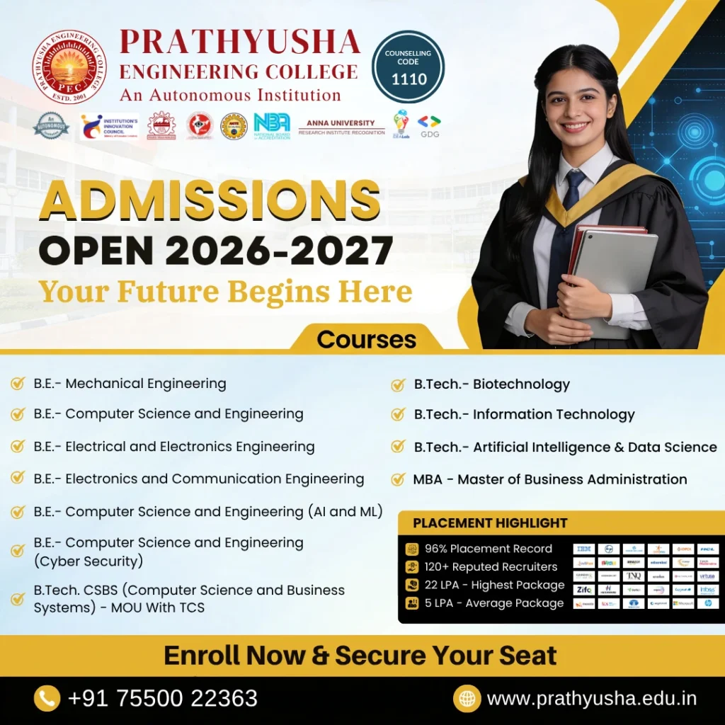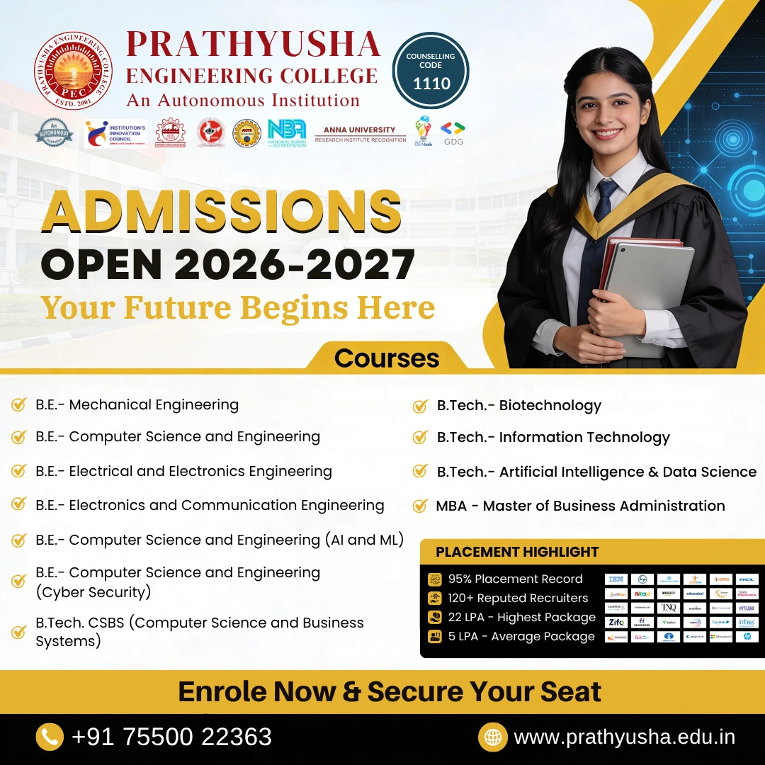 Prathyusha Engineering College offers excellent faculty, great infrastructure, and supportive environment that helped shape my career and confidence.