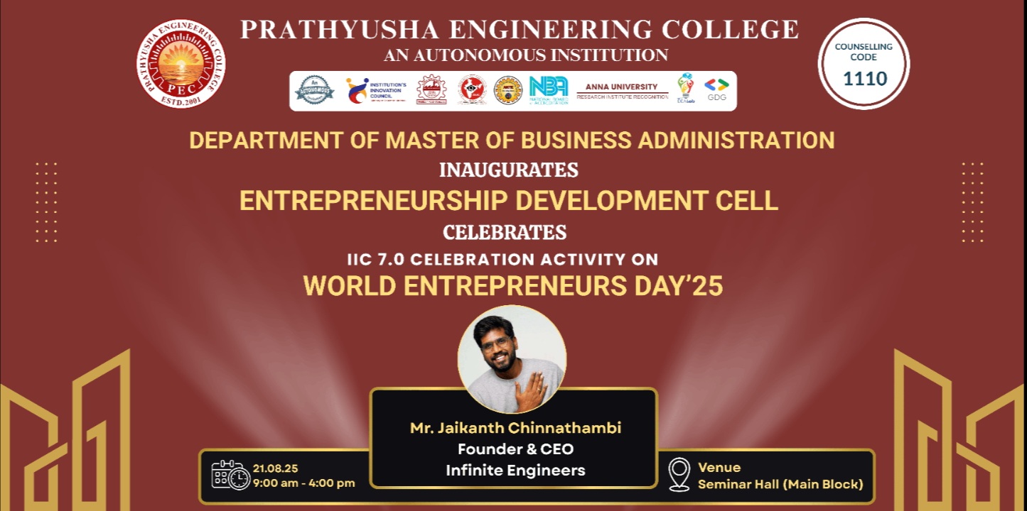 The MBA (Master of Business Administration) program at Prathyusha Engineering College exemplifies the institution’s commitment to excellence in professional education. Designed to unlock each student’s potential, the program prepares them to thrive in today’s competitive business landscape. With a blend of meticulously crafted academics, hands- on live projects, corporate engagement, and comprehensive soft skills training, the program equips future business leaders with the expertise and confidence to excel in their careers.